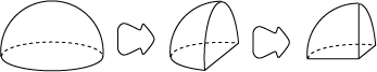 We now apply the process again to the ‘essential’ hemisphere to find a neck in the direction, i.e.cutting the hemisphere in half in