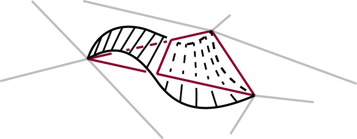 How can this be possible? You might have already observed that with some simple curvature bounding, we can push the argument for trivial fact #1 to show that area of the curved surface is controlled above by the straight surface, The point being (perhaps to one’s surprise) that the ‘straight surface’ can be a lot LARGER than the curved one!