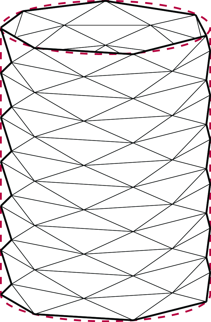 So the example is a sequence of ‘lanterns’ converging to a standard cylinder (say of height and circumference both equal to ), i.e. PL surfaces with triangular faces, vertices on the cylinder, with smaller and smaller ‘grids’, and the sum of areas of the triangle blows up to infinity.